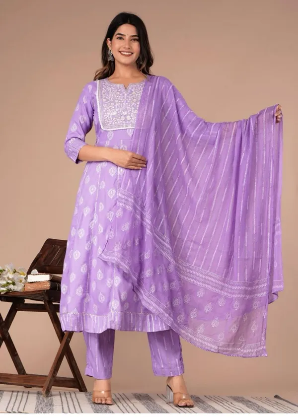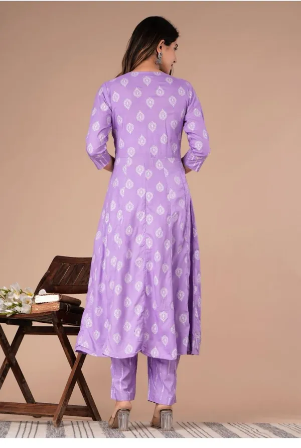 Light Blue & WhiteThree Fourth Sleeve Kurta Pant Set For Wom
